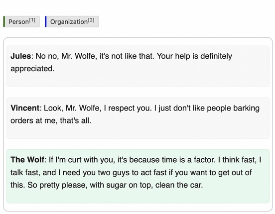 - Labels: Currently includes βPersonβ (green) and βOrganizationβ (blue).
